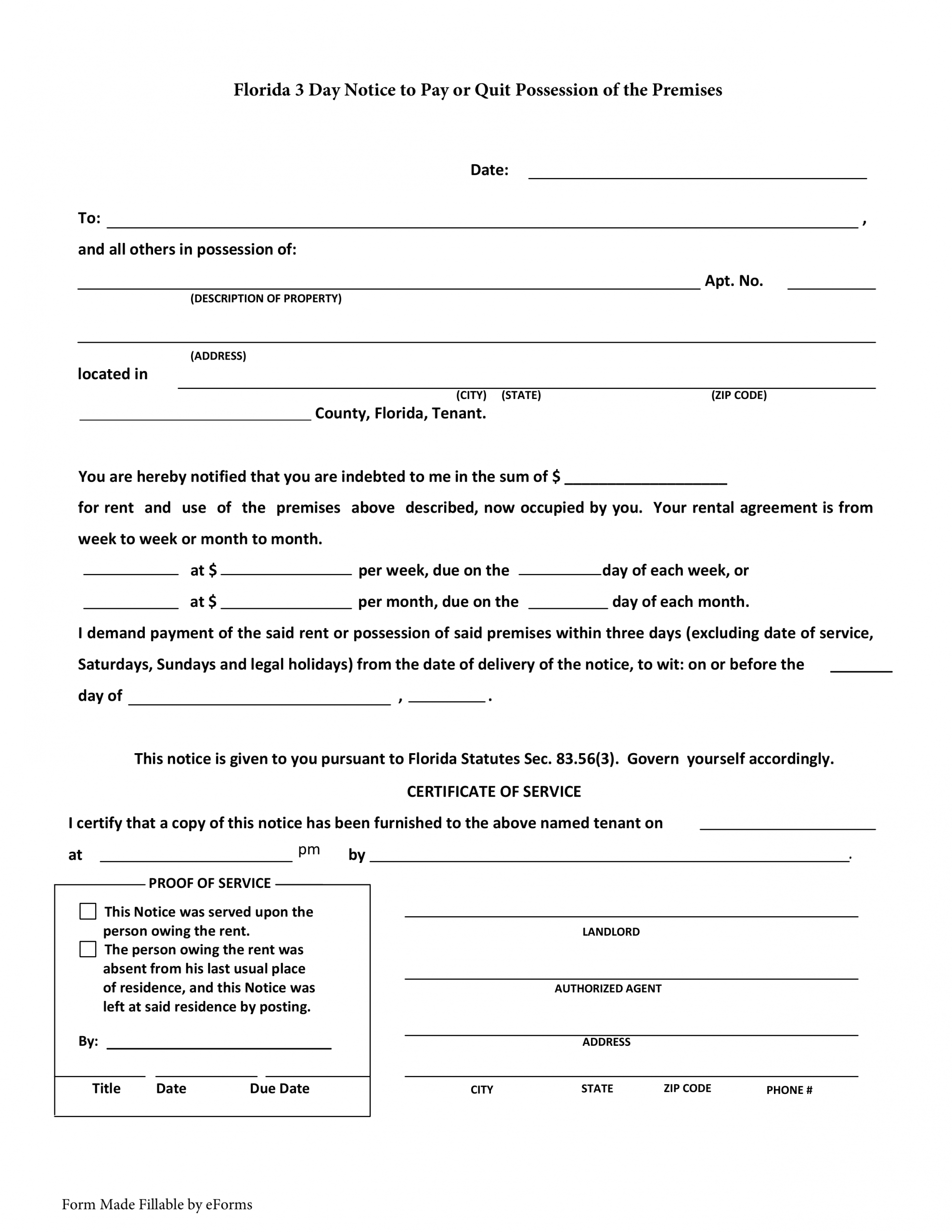 that has accrued, the last day they have to pay that overdue rent, your name and address, the place where they should make payment, the tenant’s name and address, and whether the notice was posted, hand delivered, or sent by certified mail.